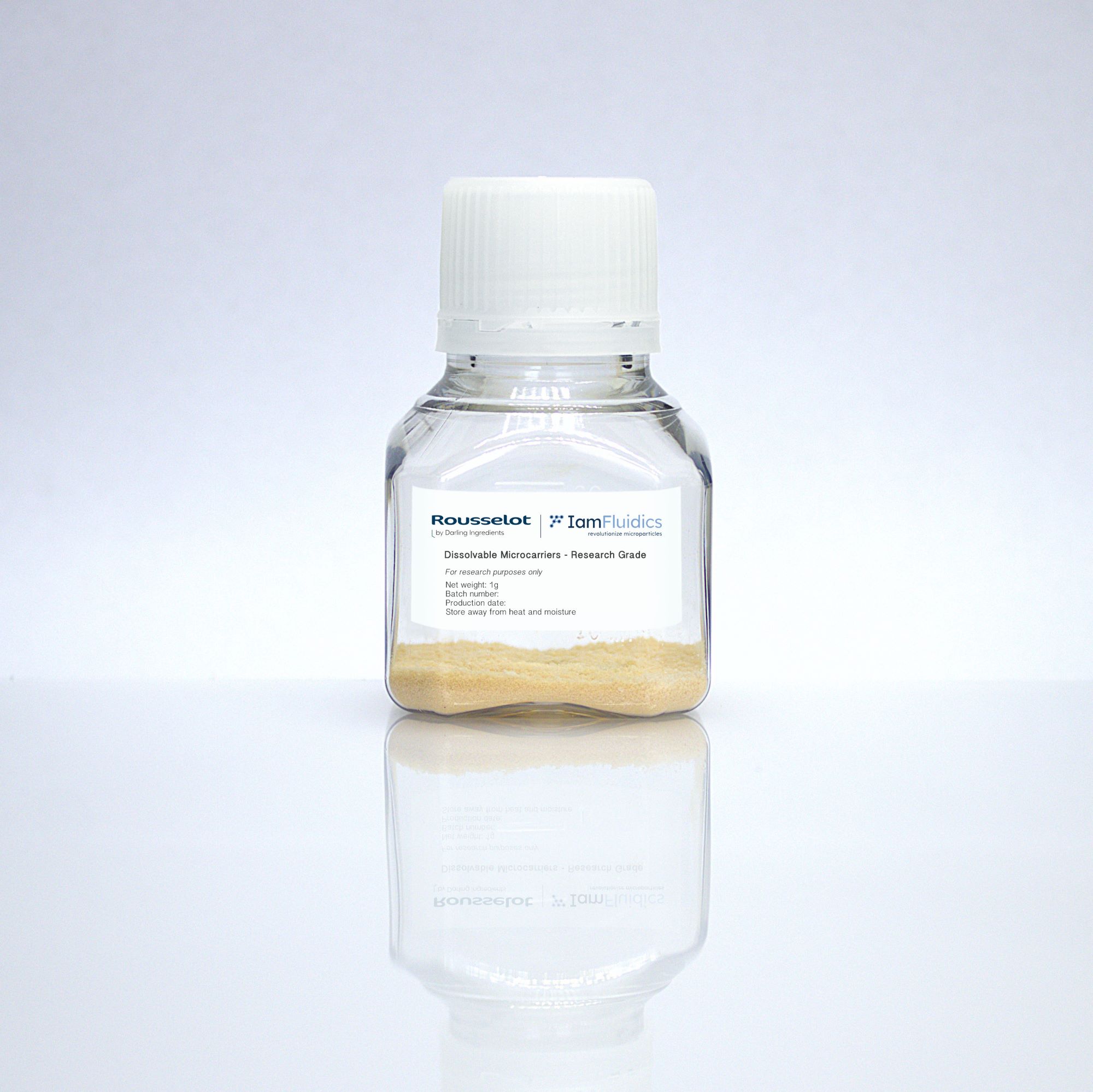 The dissolvable microcarrier is produced using IamFluidics’ patented IN-AIR MICROFLUIDICS™ technology. It consists of alginate-based microcarriers, coated with Rousselot’s denatured collagen, which comes with full documentation, including a virus-inactivation certificate. The new microcarrier offers the following advantages: